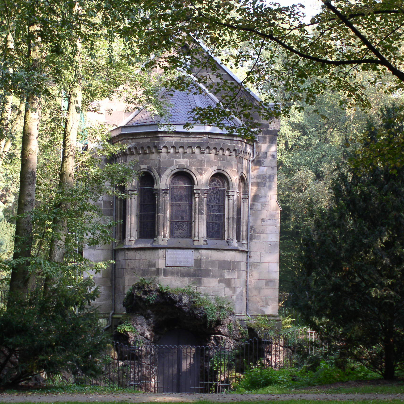 Wer mit dem Rad auf dem Deich Richtung Kaiserswerth strampelt, darf nicht vergessen, vorher bei Lohausen zwischen den Feldern abzubiegen. Nicht umsonst ist die heilige Stätte in Düsseldorf-Lohausen eine Memorial Kapelle von dessen Förderverein ein lang gehegtes Kleinod. Erbaut aus Liebe zu seiner (zu früh) verstorbenen Frau Mathilde, ließ der Industrielle Heinrich Viktor Lantz 1879 im sogenannten Lantz`scher Park ein kleines Gotteshaus mit darunter liegenden Familiengruft errichten.