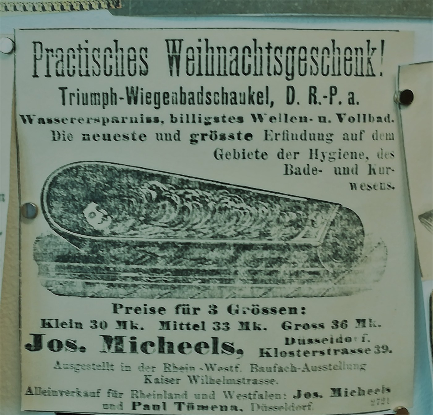 Anzeige zur Wiegenbadschaukel Neuss – volles Baden im Zuber – Bildrechte Stadtarchiv Düsseldorf