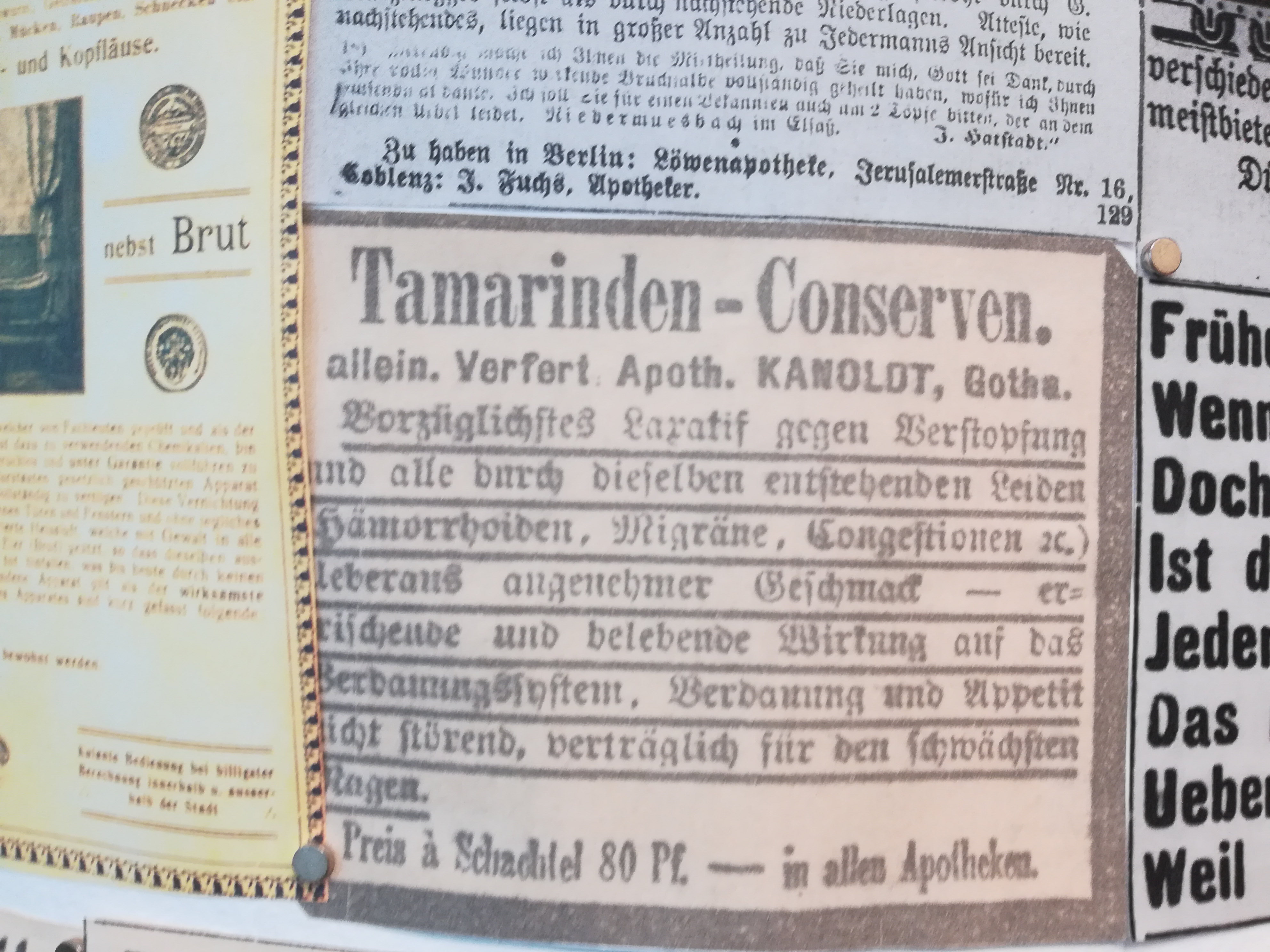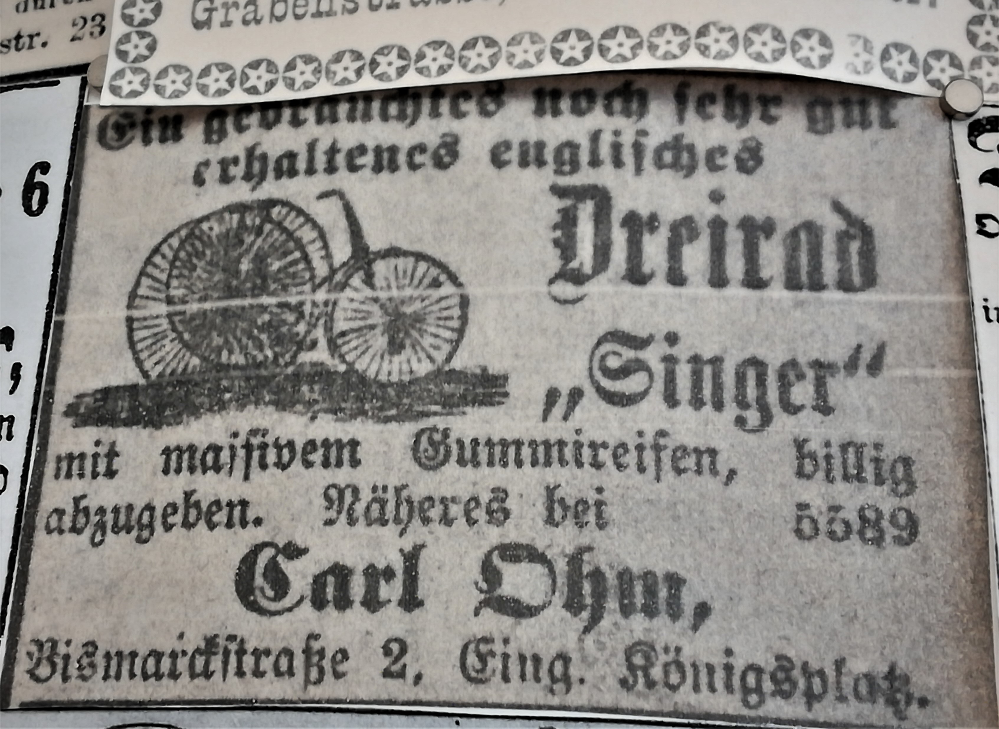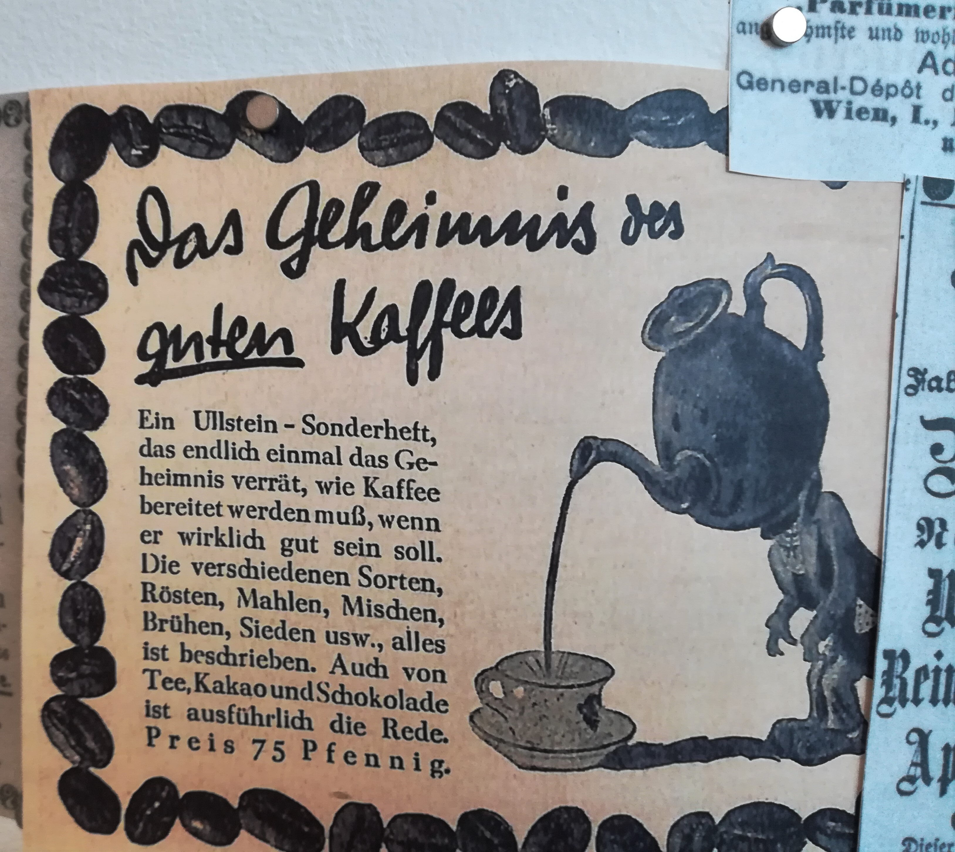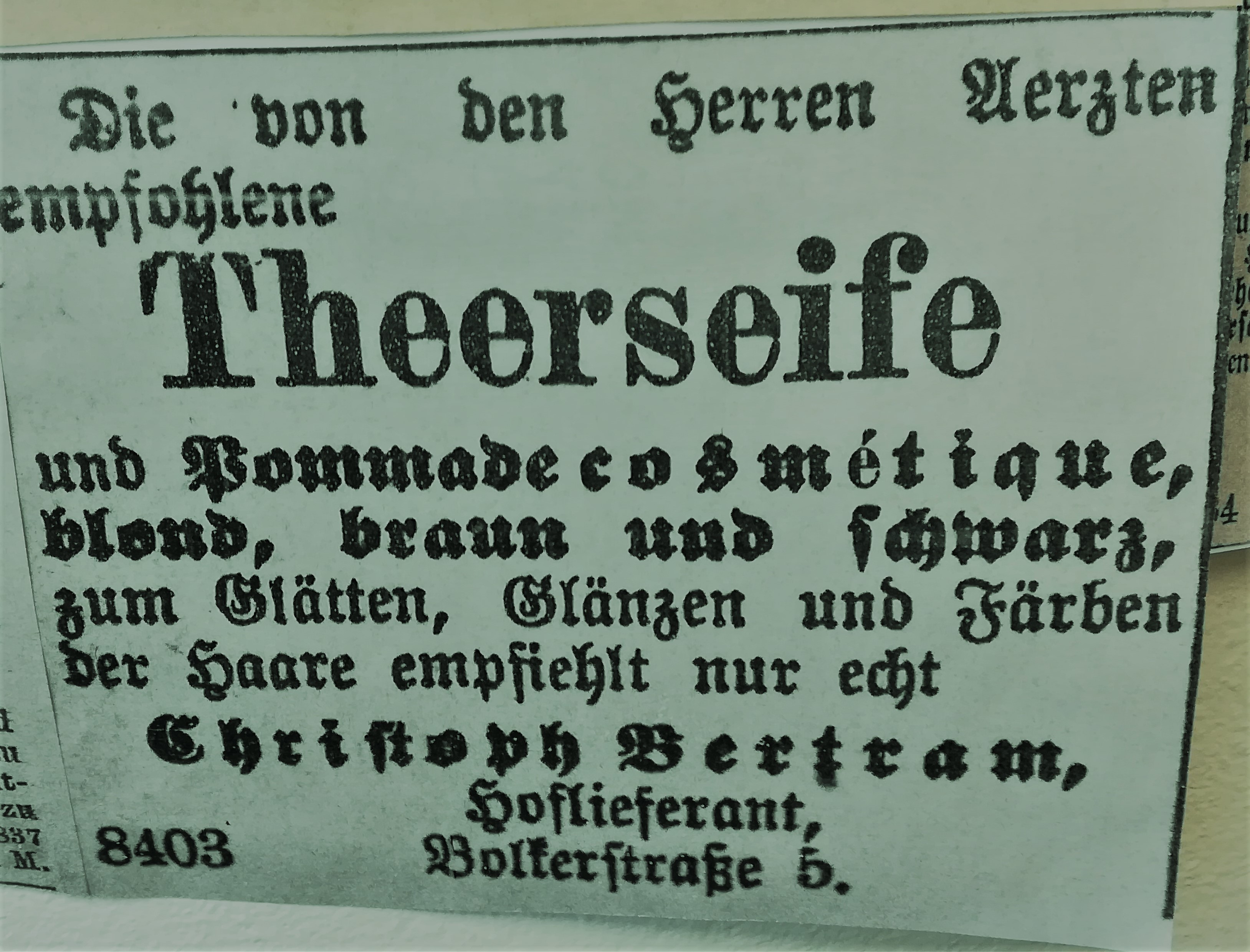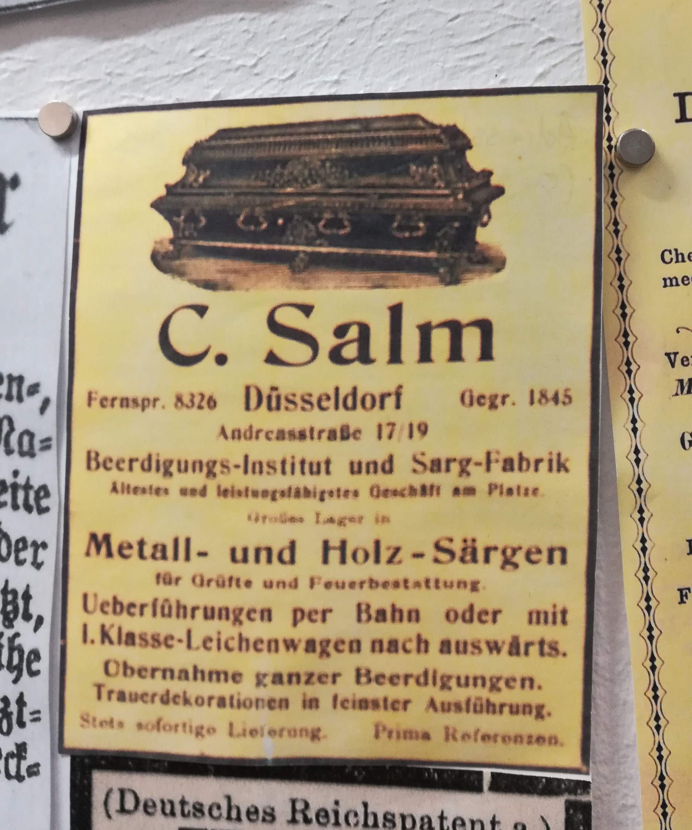 Die Besuche sind allerdings nie umsonst, weil sich mein Blick auch auf andere Dinge richtet, als auf den nüchternen Aktenschrank, in dem die Kirchenbücher lagern. Jedes Mal stehe ich im Lesesaal vor der Litfaßsäule, an der die Zeitungsanzeigen aus dem 19. Jahrhundert gepinnt sind.