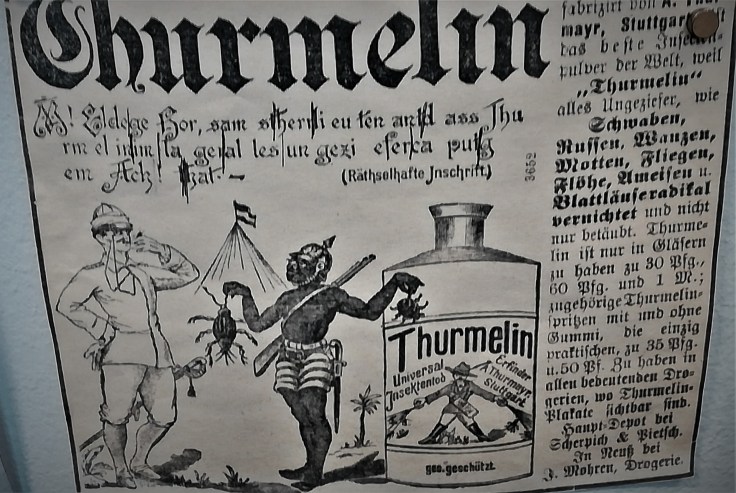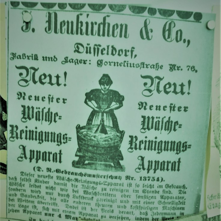 Fasziniert lese ich von der angepriesenen „Wiegen-Bad-Schaukel“ die nicht nur das hygienischste Baderlebnis aller Zeiten verspricht, sondern ein Wellen- und Schaumbad garantiert. Mich erinnert sie eher an die diese Zinkwannen, in denen im „Tatort“ die Filmleichen abtransportiert werden;-), der gefährlichen Ungeziefermedizin „Thurmelin“ , und dem Wäscheapparat, dessen Apparatur auch Kartoffeln stampfen könnte.