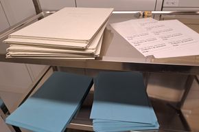 Drittens dürfen alte Dokumente nur noch säurefrei ihr Dasein fristen. Sprich, Aktenbände in säurefreie (passende Mappen) legen. Ohne Metallklammern etc., versteht sich. Vorher noch wichtige Aufdrucke von anderen Aktendeckeln müssen kopiert werden (die ja wegen Säure nicht mehr benutzt werden können). Dann in die bereits vorbereitete säurefreie Kiste mit den Mappen hineinlegen. Karton zu, ihn mit der laufenden Nummer wie im Findbuch bezeichnet, beschriften. Und – Vaya con Dios – ab in den Aktenschrank.