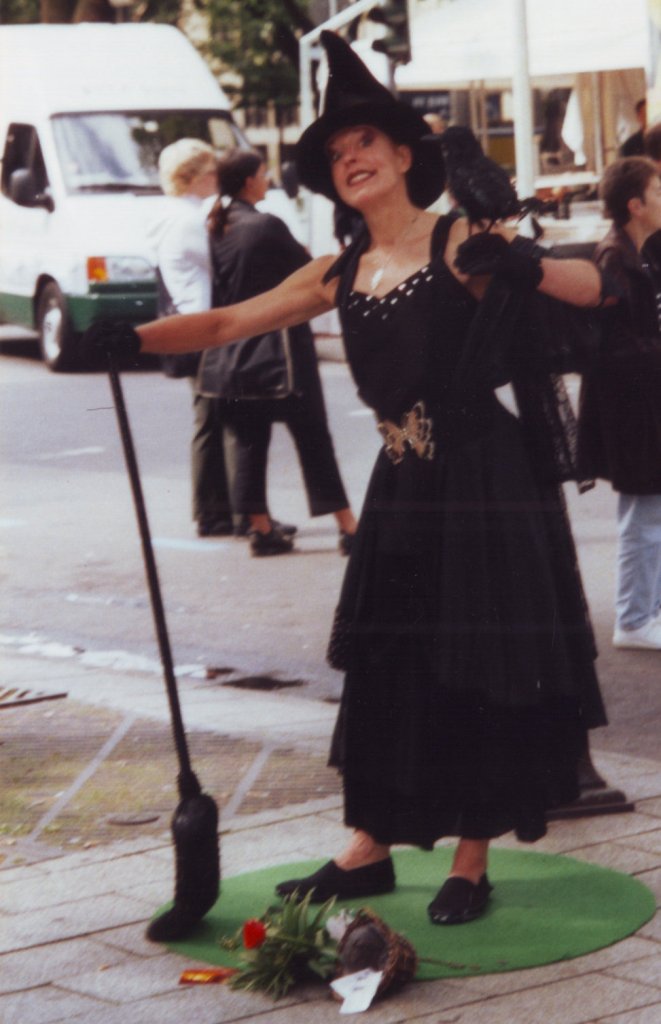 Düsseldorfs Stadtoriginal: Angela Spook als Hexe von der Kö
