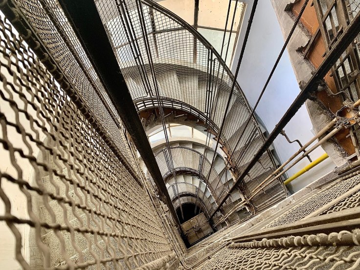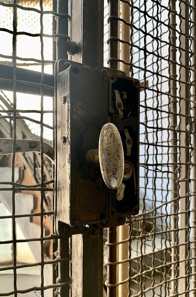 Der Blick auf den Notrufknopf tröstete mich. Dass schnelle Hilfe nahen würde. Bis ich einen Blick auf Wikipedia tat und las, dass Aufzüge, die vor 1999 erbaut wurden, zwar die Alarmklingel auslöst, aber niemand kommt, um uns zu befreien.