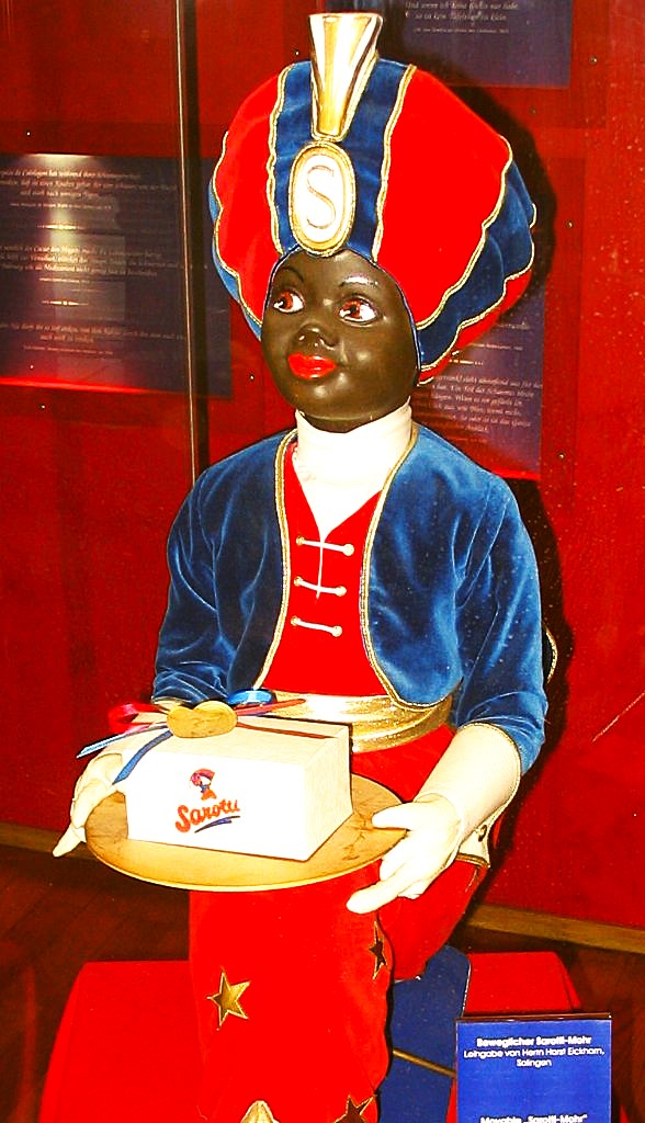 Ein kleiner Kerl mit Turban, Pluderhosen und Schnabelschuhen. Das Gesicht schwarz wie ein Kohlekeller und die mit Kinder-Kulleraugen Augen mit einem Tablett in der Hand.